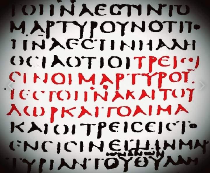 [ὅτι τρεῖς εἰσιν οἱ μαρτυροῦντες τὸ πνεῦμα καὶ τὸ ὕδωρ καὶ τὸ αἷμα..]*