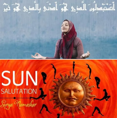 لم تسمع أختنا التابعة المقلدة يوما بشيء يدعى “يوغا سريا نمسكار” مثلا.. وهي تعني تقديس أو عبادة أو السجود للشمس.. وتحديدا.. لصنم إلهة الشمس عند الهندوس “سريا”..